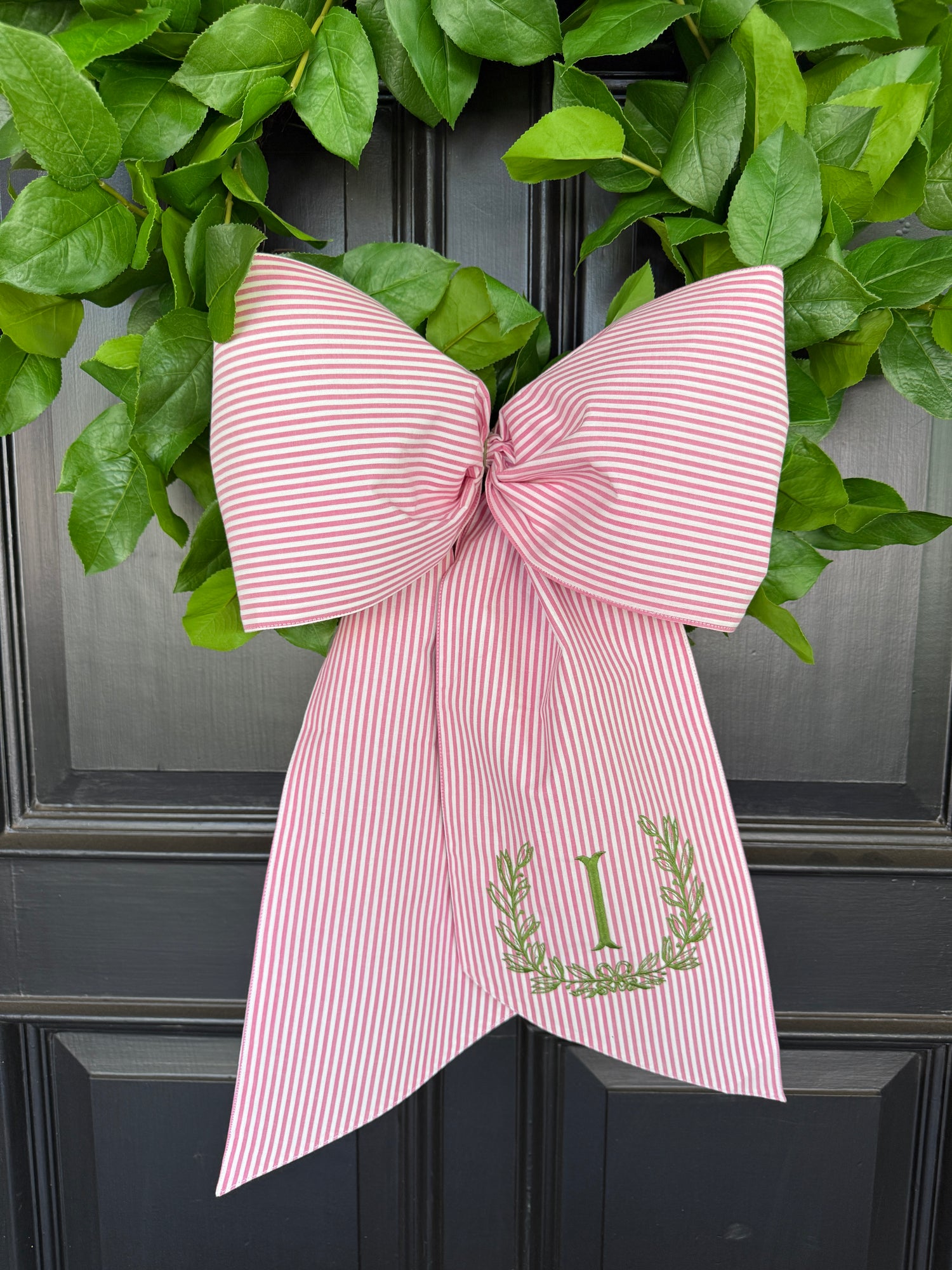 Pink striped jumbow wreath sash monogram available