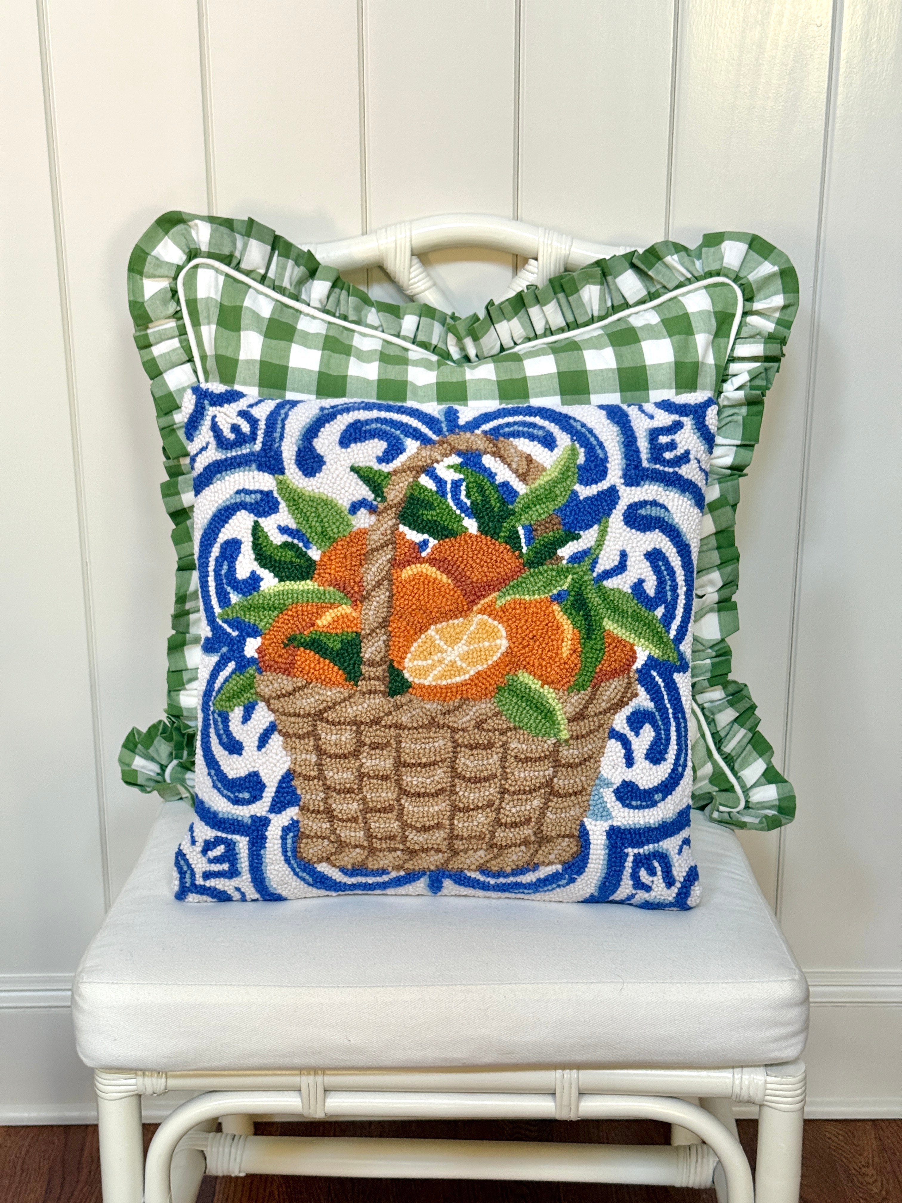 Moss green floral block printed ruffle tissue cover, custom monogram available- Regular price