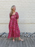 Lottie dress with puff sleeves in red and pink