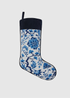 Chinoiserie flowers blue and white needlepoint stocking