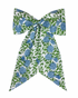 The signature bow wreath sash in a blue and green hydrangea print is a lovely combination with almost any wreath.