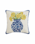 This 100% wool hand hooked pillow features a blue and white chinoiserie jar with yellow daffodils . So charming!