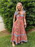 This is it! THE dress of the summer! Meet Maisie, our newest cotton block print maxi dress in a fresh coral colored English Floral. She’s full of sweet details like a tiered skirt, and contrasting striped banding. The bow straps are adjustable for the perfect fit, and it features a smocked back panel for comfort. Did we mention it has POCKETS!? Whether you're sipping lemonade on the porch or hitting up a summer wedding or soirée, this dress is a fun, versatile addition to your closet. Throw it on with sneakers or sandals, it’s truly a go anywhere dress!
