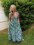 This is it! THE dress of the summer! Meet Maisie, our newest cotton block print maxi dress in a blue and green tulip print. She’s full of sweet details like a tiered skirt, and contrasting striped banding. The bow straps are adjustable for the perfect fit, and it features a smocked back panel for comfort. Did we mention it has POCKETS!? Whether you're sipping lemonade on the porch or hitting up a summer wedding or soirée, this dress is a fun, versatile addition to your closet. Throw it on with sneakers or sandals, it’s truly a go anywhere dress!