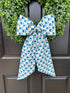 The newest addition to our wreath sash line is a classic block print in blue floral on a pale green background. Made from 100 percent cotton hand block printed fabric from Jaipur, India. This sash makes a fluffy bow or tailored knot for your wreath. It’s not just for wreaths though, tie it anywhere! I’ve also used mine on a ginger jar (so lovely!), or around a dog’s neck. Anywhere you need a bow, the options are endless!