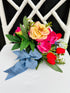 Faux flower drop-in bouquet arrangement, bright colors mixed floral
