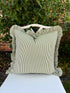 This darling hand block printed green and off white striped pillow cover is 100 percent cotton, fully lined, and features a hidden back zipper.