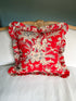 This darling frill cushion cover features a charming red floral toile print and hand gathered ruffle trim.