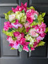 Is there any better combination than pink and green!? It just screams Spring! This full, fluffy 22” wreath is made from hydrangeas in several shades of pink and green, pink peonies, tulips, roses, and the cutest pink cabbages.